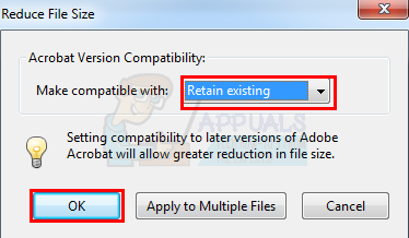 - Select Retain existing from the drop down menu in Make compatible with section