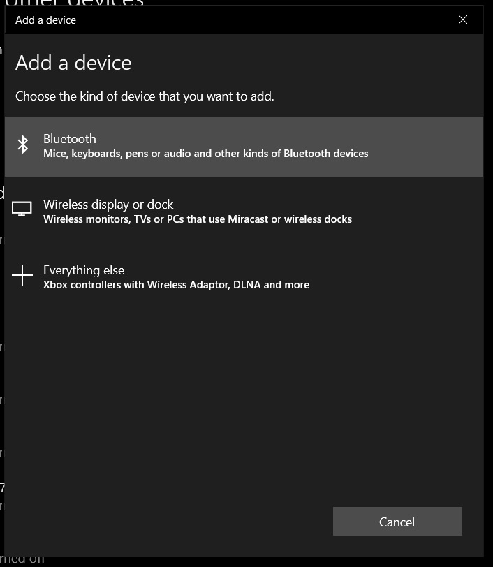 To pair the two devices, head into the Bluetooth & other devices settings on your Windows PC. Click on the plus icon at the top beside “Add Bluetooth or other device.” A Bluetooth configuration window ill pop up. Click on the first option at the top of the pop up that reads “Bluetooth” and specifies “mice, keyboards, pens, or other kinds of Bluetooth devices.”