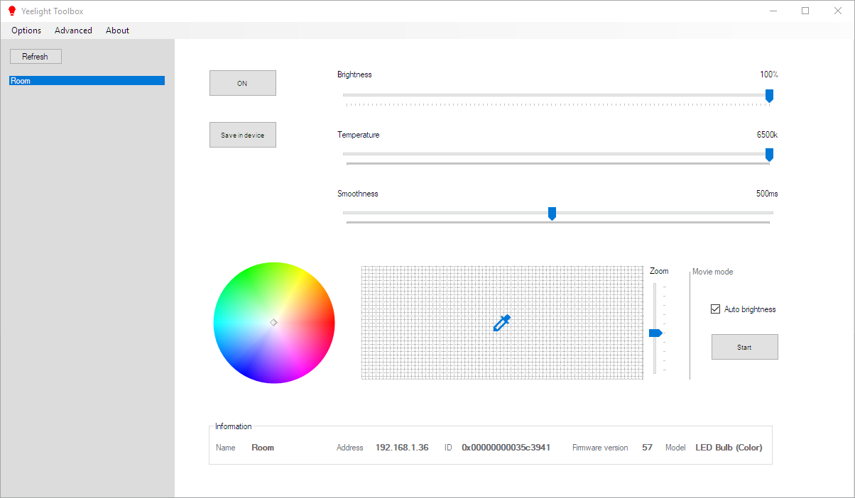 Now you should be able to control your Yeelight devices through the Yeelight Toolbox interface, including enabling Movie Mode.