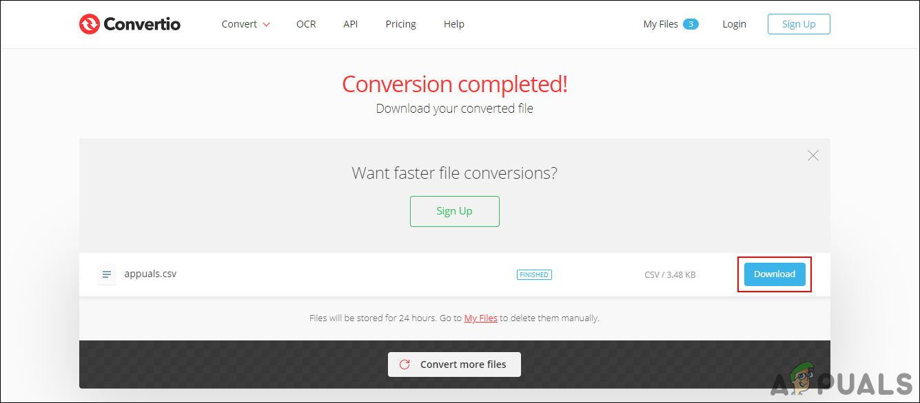 Downloading the converted file