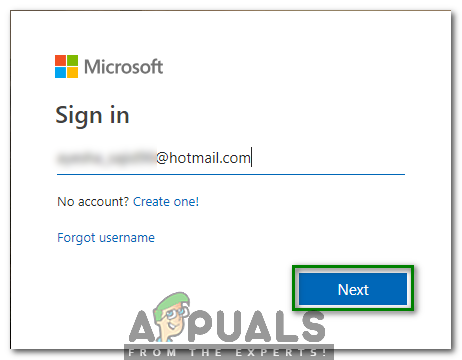 - After doing this, type in your Hotmail ID and then click on the Next button as shown in the following image: