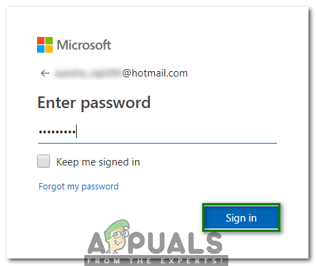 - Now enter the password of your Hotmail account and then click on the “Sign in” button as highlighted in the image shown below:
