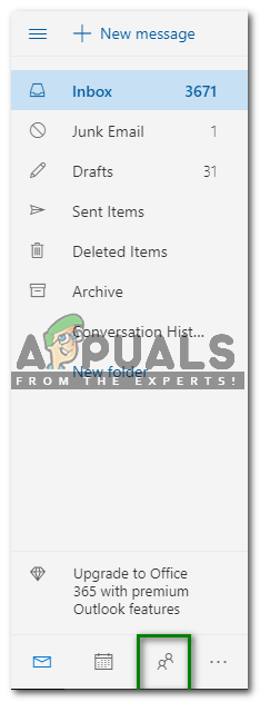 - After successfully signing into your Hotmail account, click on the People icon located at the bottom right corner of your Hotmail window as shown in the following image: