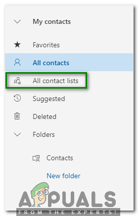 - Select the All Contact Lists option as highlighted in the image shown below: