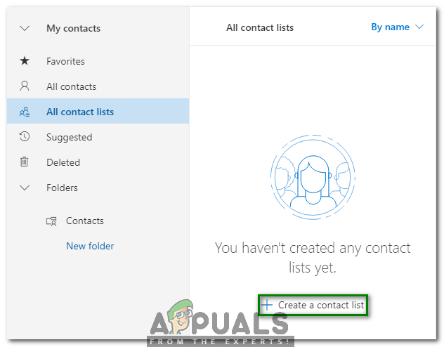 - Now click on the link saying, “Create a Contact List” located on the right pane of the People window as shown in the following image: