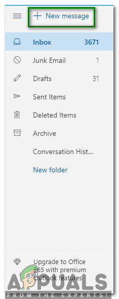 - Now click on the New Message icon located at the top left corner of your Hotmail window as highlighted in the image shown below: