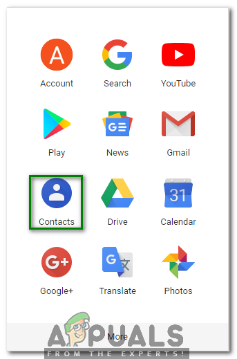 - As soon as you will click on this icon, a menu will appear on your screen. Select the Contacts option from this menu as highlighted in the following image: