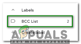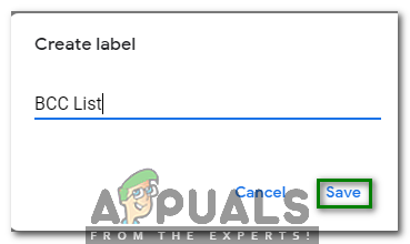 - Now type any desired name for your label and then click on the Save In this example, I have named it as BCC List as highlighted in the image shown below: