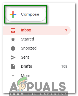 - Now click on the Compose button located at the top left corner of your Gmail window as highlighted in the image shown below: