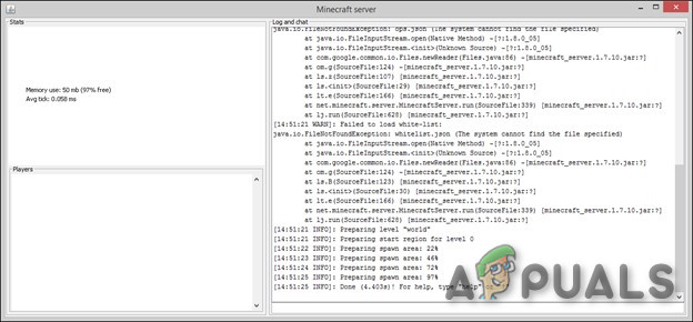 Double click the file to start your server. You may get a “Class_Not_Found” and ServerGuiConcole error, just ignore these errors and you should see your “Server Thread/INFO” dialog start the server