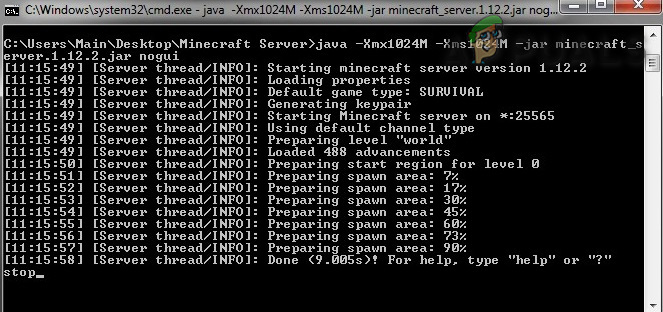 - Now you can open the command file to run the server. When you double-click the file, a new window will open, and you might see some error messages. Don’t worry about them; the server should now be ready to play Minecraft.