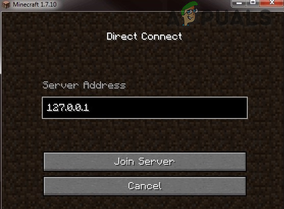 If the Minecraft game is being played on the same system as the Minecraft server, enter 127.0.0.1: