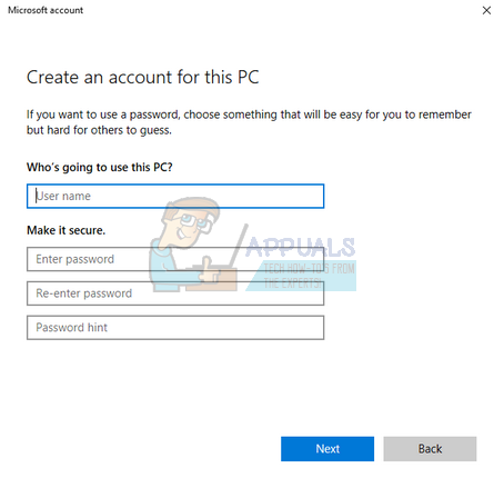 - Now select the option “Add a user without Microsoft”. Windows will now prompt you to make a new Microsoft account and display a window like this.