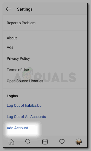 Find ‘Add Account’ right at the end of this list and click on it. - To reach the tab for ‘Add Account’, there is another way for you to do that on Instagram. Instead of clicking the three lines on the right according to step one, you can simply locate the downward facing arrow next to your current accounts name which will be on your home screen for Instagram as shown in the picture below.