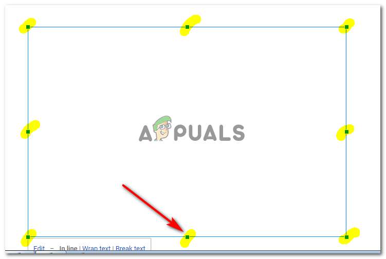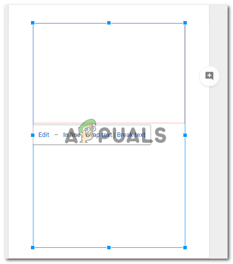 The shape once you have saved the editings. This obviously is not the size of the page, so you edit the shape once it has been added to your document by clicking once on the border of the shape, which will make the anchor points for the shape visible, and now you can drag these anchor points manually according to the shape of the page.