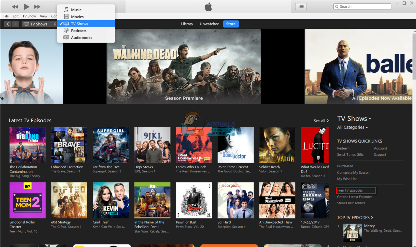 - Now go in the TV Shows section in the Store and click on Free TV Episodes.