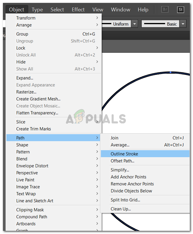 - Select all the layers, or all the shapes directly, and create the outline strokes for these. For this, after using the selection tool, select all the shapes that you have drawn on your artboard, including the circle.
