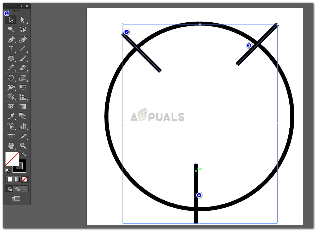 Drawing a circle on your artboard. - After drawing a circle, you need to use the Line segment tool.