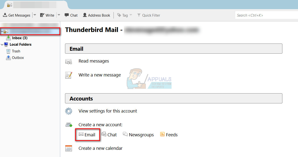 - Open Thunderbird, select one of your current email accounts in the left panel and click on Email in the “Create a new account” section.