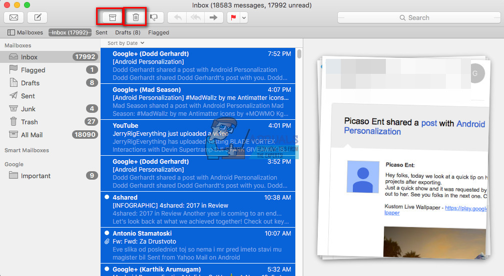 - Now, click the Delete button for deleting, or Archive for archiving your emails.