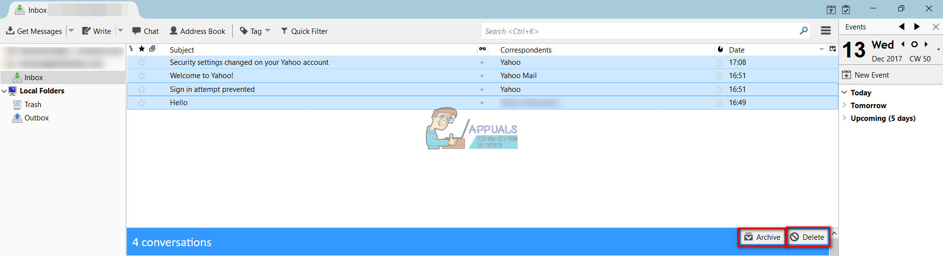 For those of you who don’t want to delete emails using Yahoo Mail in the browser or Thunderbird, you can do it using your favorite email client. In general, the procedure is pretty similar to the one used in the Thunderbird method. First, you need to add your Yahoo account to your email client and let it sync with the servers. Next, you should select all your emails in the inbox folder. And, the last step is deleting them or archiving them by pressing the proper button.