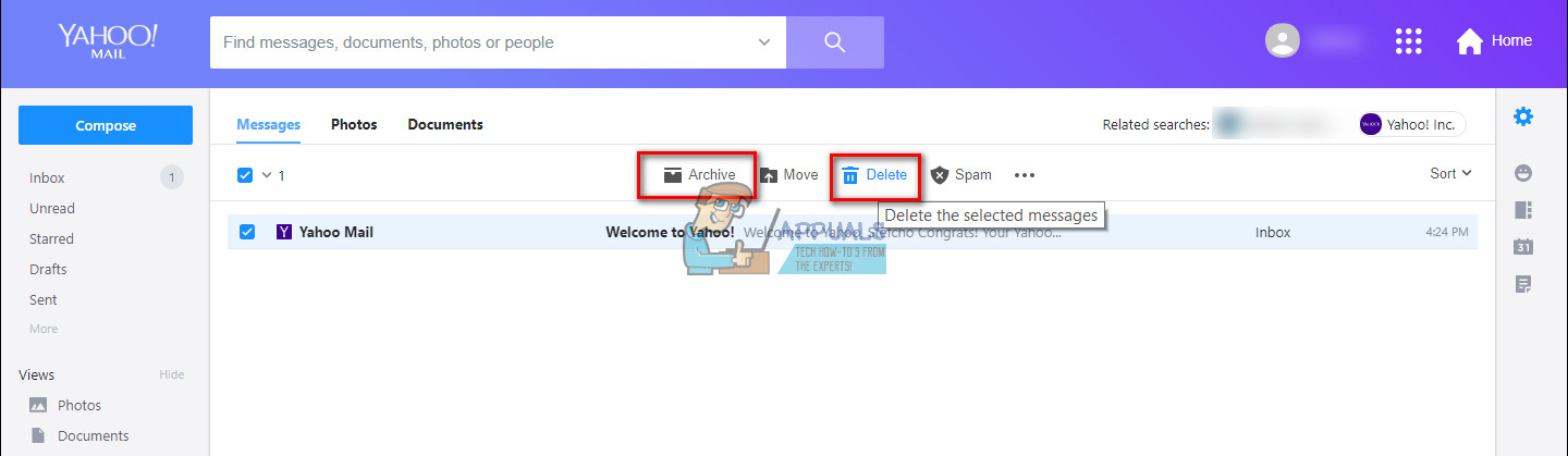 - Now, press the Archive button if you want to archive the messages. Or, press the Delete button to delete them permanently.