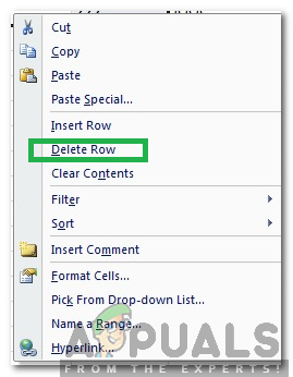 - Click on the “Delete Row” option to completely remove the selected Rows.
