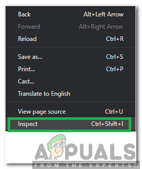 Right-clicking and selecting “Inspect Element”