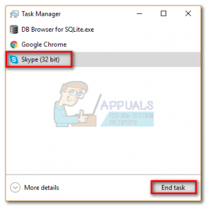 Note: For this to work, you need to make sure that Skype is not running in the background. To do this, press Ctrl + Alt + Delete, select Skype and click End task.