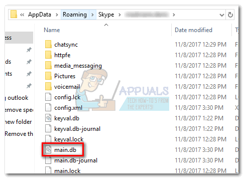 - Navigate to Roaming > Skype > “Your username” and locate the main.db file. Go ahead and create a copy of this file and store it somewhere safe, just in case you end up messing up your Skype conversations.