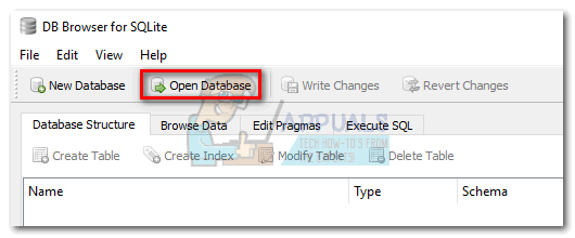 - Open SQLite Browser and click on Open Database.