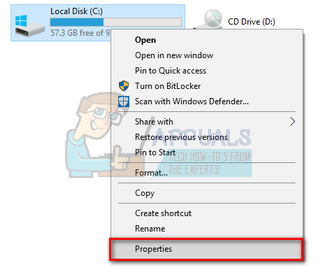 - Open your file explorer and navigate to “This PC”. Right-click on Local Disk C (or some other disk where you have installed your operating system) and click Properties.