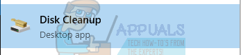 - Press Windows + S to launch the search bar. Type “disk cleanup” in the dialogue box.
