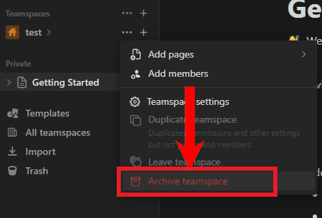 However, if you’re aiming to delete a workspace, you should know that deleting a teamspace will permanently delete it and there will be no way to recover its content from the Trash. At any rate, if you want to archive a teamspace, follow the instructions outlined below.