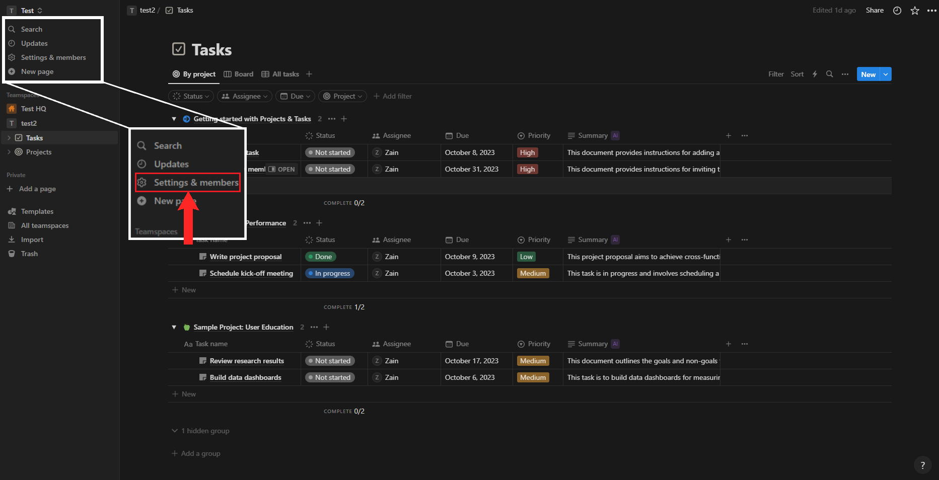 Open up Notion’s settings by click on “Settings & members” from the sidebar.
