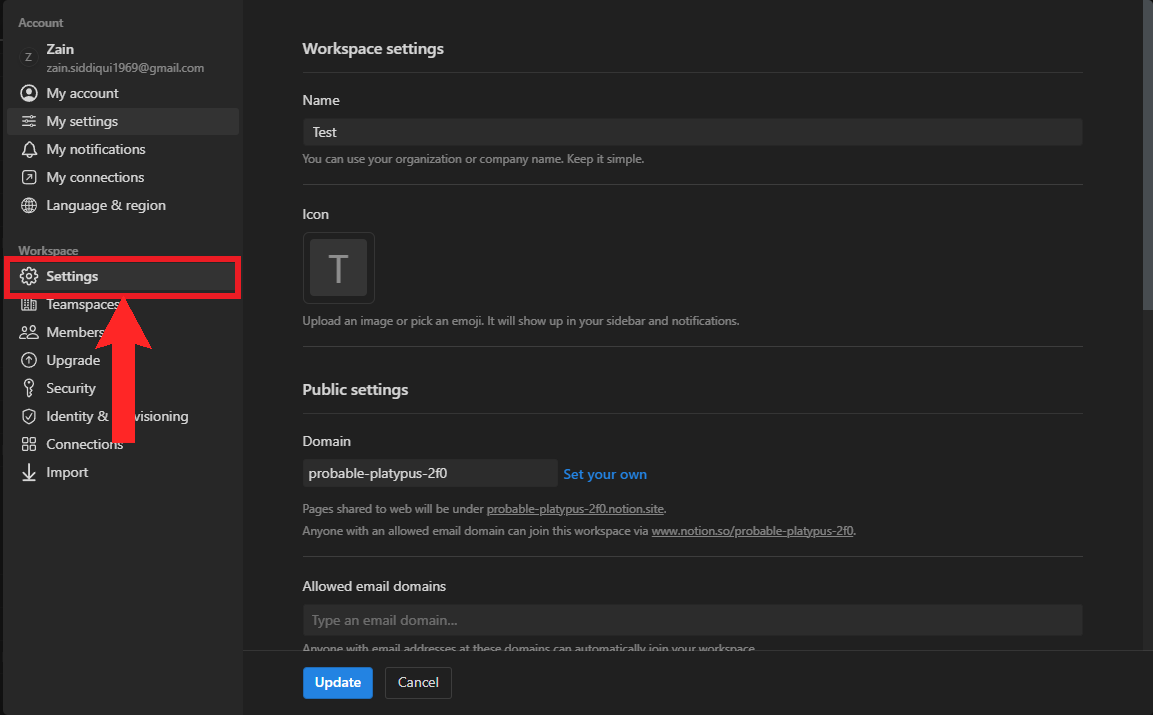 Step 1: Access Notion’s settings