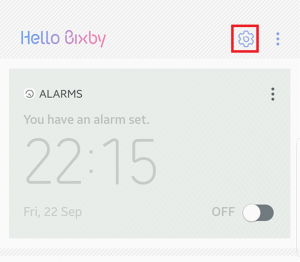 3. Once you’re in the main menu of Bixby, tap on the gear icon in the upper right corner of the screen.