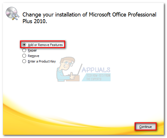 - Activate the toggle next to Add and Remove Features and click Continue.