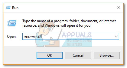 - Press Windows key + R to open up a Run window. Type “appwiz.cpl” and press Enter to access Programs and Features.