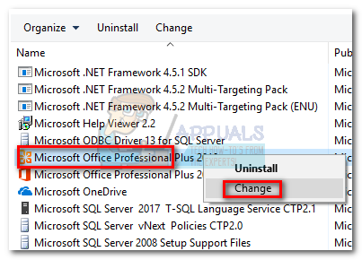 - Scroll down and find Microsoft Office Professional (Plus) 2010. Then, right-click on it and select Change.