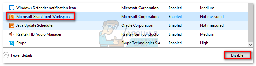 Note: In Windows 10, disable Microsoft SharePoint Workspace.