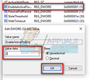 - Now, look at the right side of the screen where different keys are listed. Search through them until you find “EnableActiveProbing.” Double-click it to open its properties.