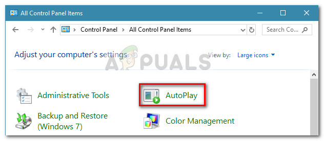 - Inside Control Panel, change the View by drop-down menu to Small Icons or Large icons, then click on AutoPlay.
