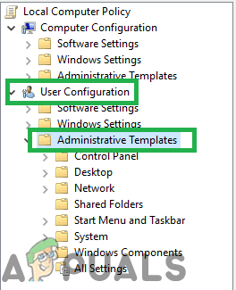 Typing “gpedit.msc” in the Run prompt - Click on the “User Configuration” option and then on the “Administrative Templates” one.
