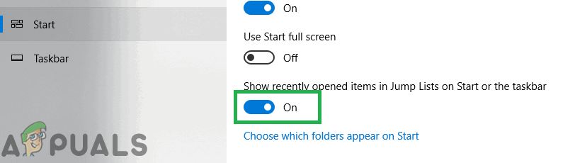 Clicking on “Personalization” - Scroll to the bottom and click on the “Show recently opened items in Jump Lists on the Start or the Taskbar” toggle to turn it off.