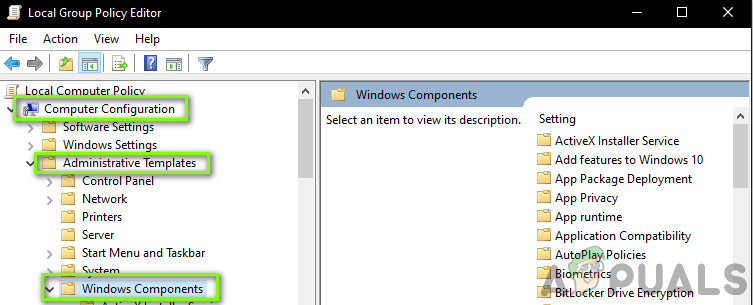 - When the window opens, scroll down in the left window and locate and click Computer Configuration. In the drop-down menu, then select Administrative Templates and then Windows Components. In this final drop-down, you will see a folder named Edge UI. Click this folder.