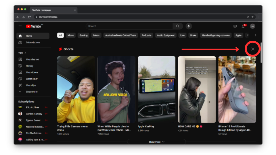 4. Remove YouTube Shorts from the Homepage Shelf