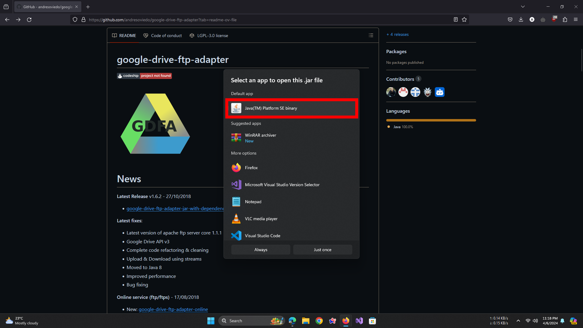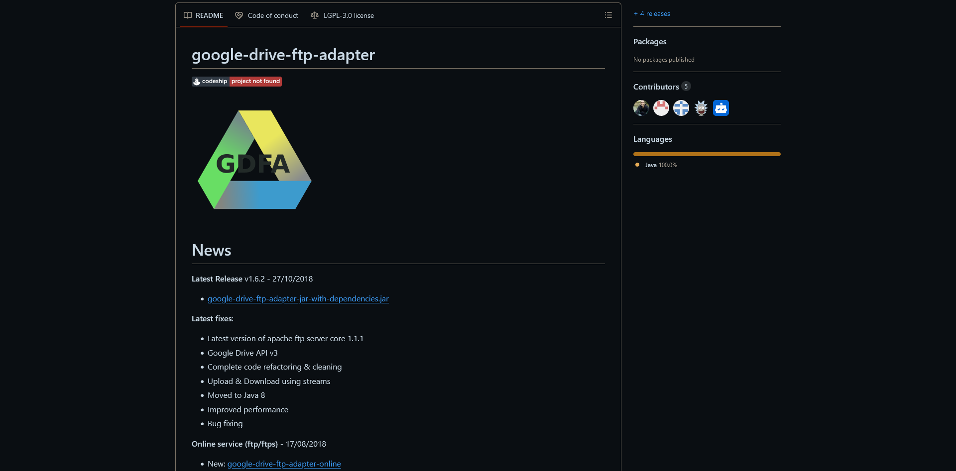 - Access the Google Drive FTP Adapter GitHub page for the official release.