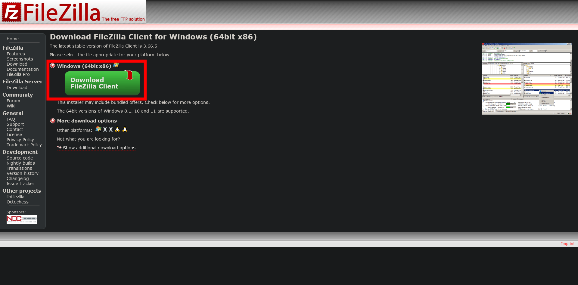- Visit the FileZilla official website and download the version suited to your operating system (Windows, macOS, or Linux).