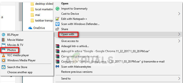- Navigate to the location of the video that you’re trying to edit, right-click on it and choose to Open With > Photos.